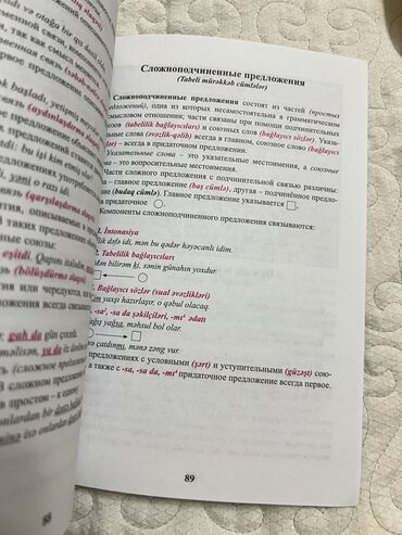 - Məzmun başlıqları arasında: mürəkkəb cümlələr (табели mürəkkəb cümlələr), bağlayıcı sözlər, intonasiya, şərt və güzəşt budaq cümlələri və s.