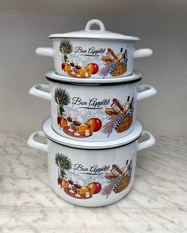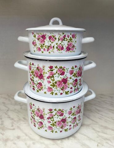 Yeni🇷🇺Rusiya istehsalı 3-lü emal qazan dəsti (tutumları 1,5litr ; 3litr ; 4,5litr )-🛑