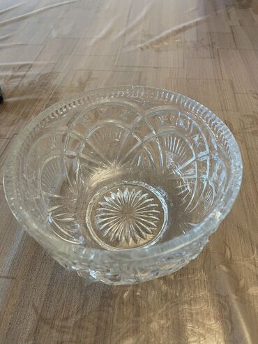 Ünvandan götürməRusiya xrustalı ,qiyməti 2- si 8 man,təzədir,işlənməyib,qədimidir,diametri 15sm,hündürlüyü 9sm