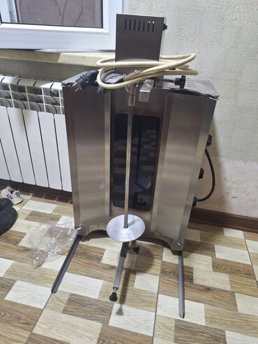 Elektrikli qril/şaorma aparatının gövdəsi və şiş sistemi - Material: paslanmayan polad korpus - Üst hissədə şaquli şişi saxlayan mexanizm və termoblok/rezistorlu qızdırıcı panel - Arxa paneldə hav...