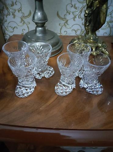Sovet dövründən qalma 6 ədəd xrustal çəkmələr. Hündürlüyü 8 sm, diametri 5,5sm.