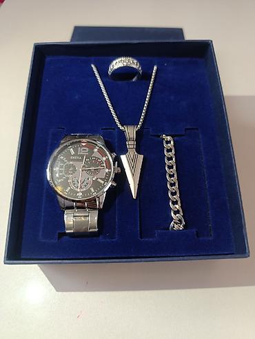 Kişi saatı və bilərzik dəsti – hədiyyəlik qutu Dəstlərin tərkibi: - 1 ədəd qol saatı - 3 ədəd müxtəlif tərzdə bilərzik (zəncir, daş və kombinə olunmuş dizaynlar) - Hədiyyə qutusu Saatların xüsusi...