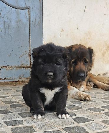 Kavkaz çoban iti balası - Cins: Qafqaz çoban iti (ovçarka) - Rəng: tünd-boz/qarışıq tonlar, sıx və qalın yun örtüyü - Cinsiyyət: disi - Şəkillərdə valideynlər göstərilib: iri gövdəli, güclü qurulu...