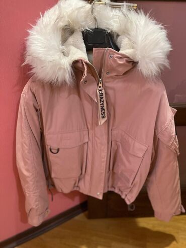 Tebii mex!Ağ rəngli qadın üst geyimi – kürk yaxalı, zəncirli fermuarlı