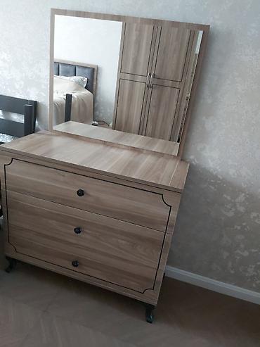 2 si birlikde 90 azn 5den 3den endirim olacaq Taxta dəst: güzgülü konsol/komod və yan tumbalar - Material: ağac əsaslı lövhə (MDF-laminat hissələr), tünd qəhvəyi və qara tonlarda dekor panelləri -...