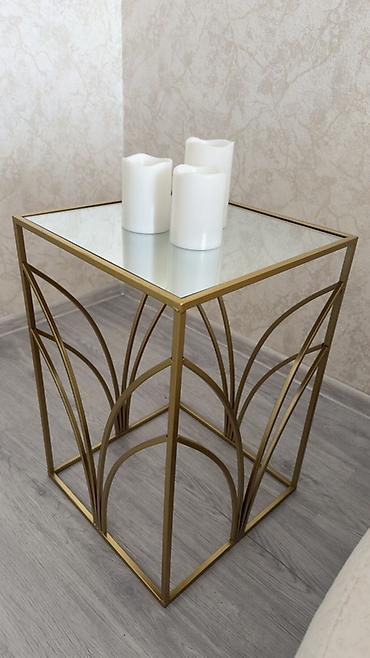 Şüşə üstlü salon/jurnal masası - Dizayn: Yuxarı səth tam şüşədən, baza isə tünd rəngli taxtadandır. Şüşə səth 4 ədəd xrom rəngli metal silindrik dayaqlar üzərindədir. - Ölçü təxmini: Uzun düzbucaq...