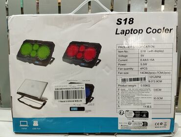 Digər brendS18 model noutbuk soyuducu. Dörd ədəd ventilyatoru ilə təchiz olunub və 17 düymə qədər noutbuklarla uyğundur. USB portu vasitəsilə enerji təmin edilir, bu da istifadəni asanlaşdırır. Noutbukun istiliyini aşağı salmaq və optimal işləməsini təmin etmək üçün nəzərdə tutulub.