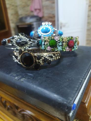 - Müxtəlif dizaynlarda bəzəkli metal qolbaqlar: gümüş tonlu və qızılı tonlu modellər