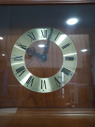 Divar saatı – mexaniki, pendulumlu - Korpus: taxta, klassik üslubda, iki bölməli ön şüşə. - Siferblat: dairəvi, ərəb rəqəmləri, kontrast oxlar; mərkəzdə istehsalçı loqosu. - Mexanizm: mexaniki qur...