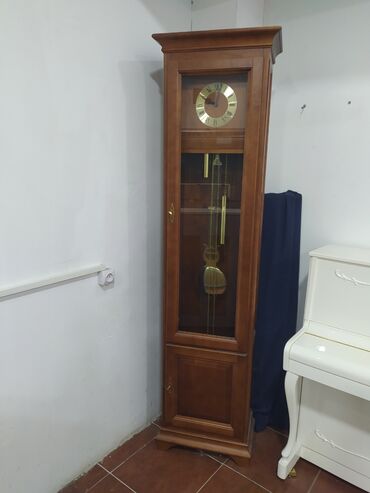Divar saati – mexaniki, pendulumlu - Korpus: cilalanmış təbii ağac, klassik retro dizayn, yuxarı hissədə dekorativ relyef element. - Siferblat: səkkizguşəli çərçivəli, ağ əsas, qara ərəb rəqəmləri...
