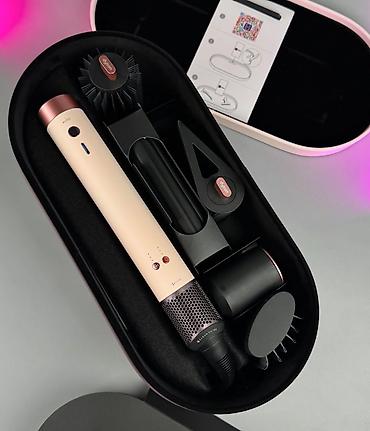 - Dəst tərkibi: əsas korpus, müxtəlif diametrli bürünən ucluq, həcm verən fırça ucluğu, düzləşdirici/hamarlayıcı fırça, S-formalı/bölücü diffuser tipli ucluq, kompakt oval konsentrator, saxlama qabı