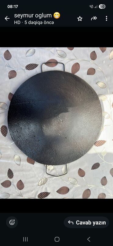 Satılır: Dəmir saç və saç üçün ayaqaltılıq/tava komplektləri Məhsul: - Dəmir saç. İki qulp, od/kömür üstündə bişirməyə uyğundur. - Saç üçün metal ayaqaltılıq (3 ayaqlı). - Saçın üzərinə qoyulan me...