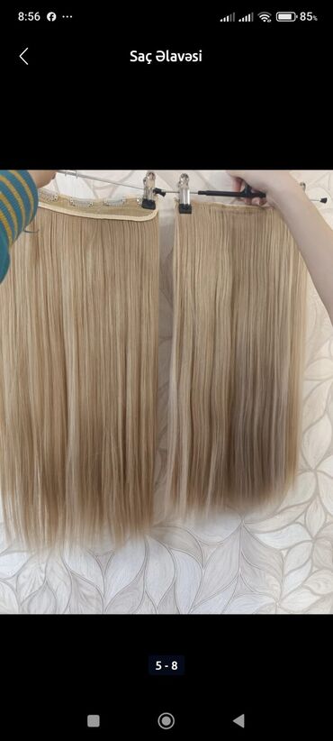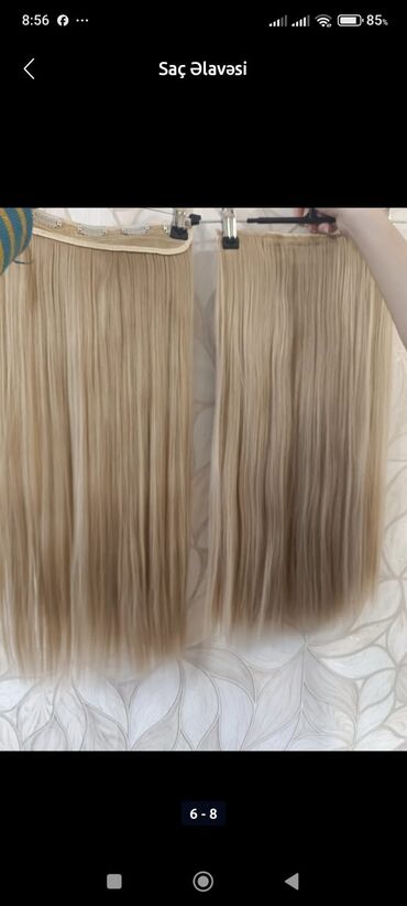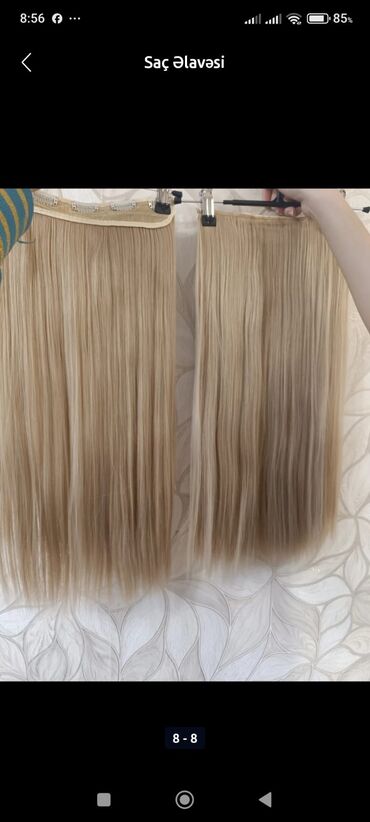 Açıq sarı rəngdə düz sintetik saç əlavələri. Bu saç əlavələri təbii saçlara həcm və uzunluq əlavə etmək üçün istifadəyə yararlıdır.tebiden secilmir yuyulur burulur