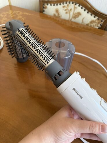 Philips brendinə məxsus saç üçün fırça-fen. Müxtəlif başlıqları ilə saçlarınızı istədiyiniz kimi formalaşdırmağa kömək edir. Saçlarınızı qurutmaq və eyni zamanda onlara həcm vermək üçün idealdır. Rahat tutacağı və istifadəsi asan düymələri var.