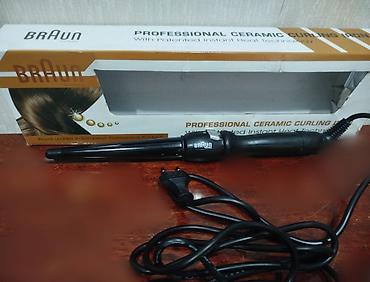 Braun saç burqası (milli curl ayırıcı spiral ilə) - Marka: Braun (Germany yazılı korpus) - Tip: Elektriklə işləyən saç burqası/maşa - Korpus: Qara rəng, ergonomik tutacaq - Spiral bələdçi: Uclar b...