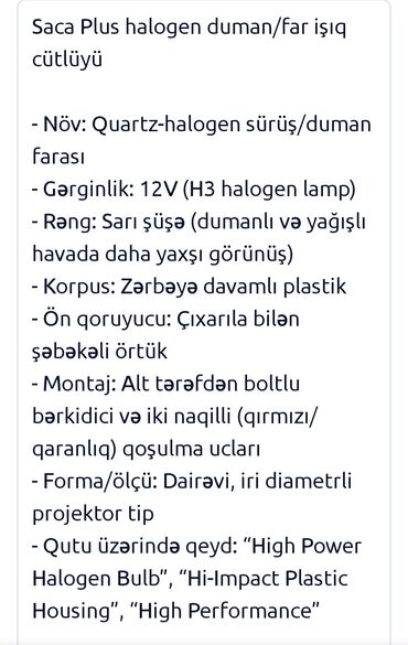 Komplekt, Duman əleyhinə faralar, Orijinal, Yeni