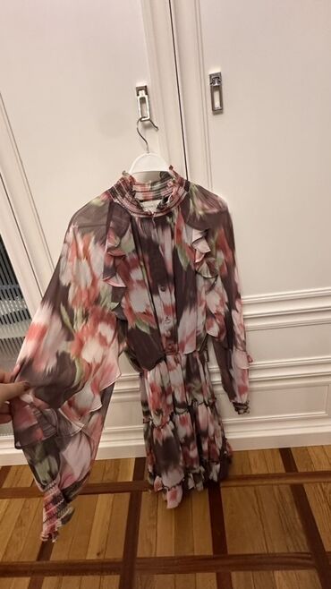 - Model: Çiçəkvari akvarel-printli uzun şifon don