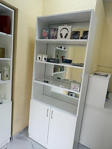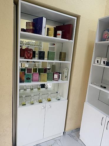 - Rəflər: çoxsəviyyəli, müxtəlif ölçülü flakon, qutu və aksesuarların səliqəli sərgilənməsi üçün