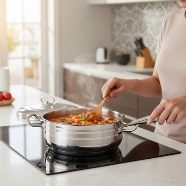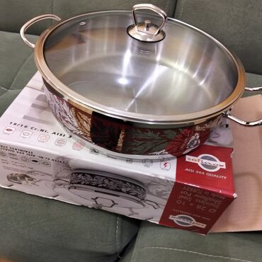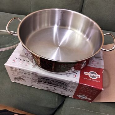 Tava/qazan tipi: dərin, yastı “shallow pot” – plov, qovurma, tərəvəz yeməkləri və s. üçün ideal. AISI 304 polad bərabər istilik paylanması və asan təmizlənmə təmin edir.