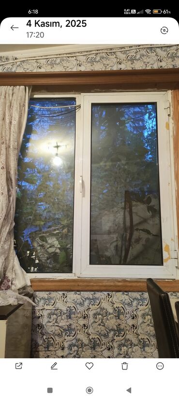 PVC plastik pəncərə – 2 ədəd - Material: ağ rəngli PVC profil - Şüşə: ikiqat şüşə paket (enerji qənaəti və səs izolyasiyası üçün) - Açılış sistemi: orta hissədə çevrilib-açılan (mətbəx/otaq üçün r...
