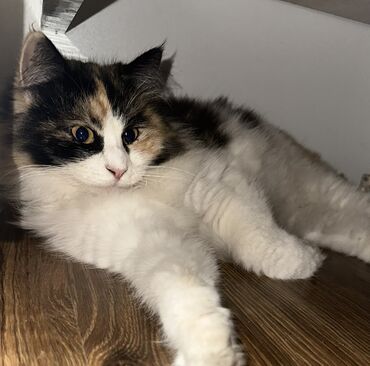 Sahibləndirirlir. Çox gözəl və ağıllı pişikdir. Tükləri uzundur. Quyruğu yoxdur. Təcili sahib axtarılır