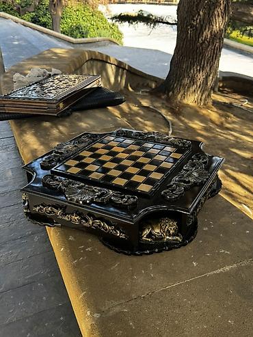 Şahmat Sahmat Çeşid çoxdu. Çatdırılma edilir. Dəst şəklində satılır Fiqurları ve çantası var. Qoz ağacındandı. Satışda madellərimiz çoxdu. Nərd Şahmat Təsbeh Mücrü Qəlyan Gəmi madelləri