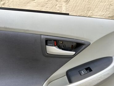 Toyota Prius salonu – ön hissə - Model: Toyota Prius (hibrid seriyası üçün uyğun interyer görünüşü) - Rəng: Açıq-boz interyer, qara panel - Oturacaqlar: Üzərində qəhvəyi rəngli üzlüklər/çəkmələr, ...