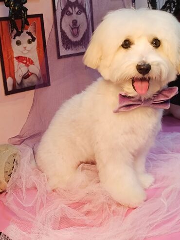 Malta bolonka, 4 ay, Dişi, Peyvəndli, Ünvandan götürmə, Pulsuz çatdırılma, Rayonlara çatdırılma