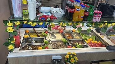 🩵Wolt hesabı açılıb tam işləkdir. Obyektdə bütün avadanlıqlar var,şəkildə göründüyü kimi vitrin soyuducu,əlavə mətbəxdə dərin dondurucu,moyka, qab qaşıqlar, dönər aparatı - 2 ədəd, stol-stullar mövcuddur.