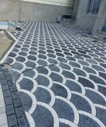 Tamet daşlarının düzülməsi və satışı - Həyət, giriş yolu, obyekt önü və park sahələri üçün dekorativ tamet döşənməsi - Müxtəlif naxışlar: dalğavari yarımdairə modulları, altıbucaqlı/romb kompozis...