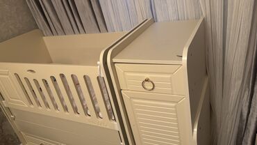 Ağ rəngli taxta beşik Xüsusiyyətlər: - Klassik dizaynlı, şaquli barmaqlıqlarla təhlükəsiz konstruksiya - Yan lövhə sürüşdürülərək aşağı düşür: valideyn çarpayısına yanaşı istifadə üçün rahatdır - ...