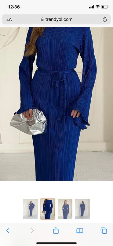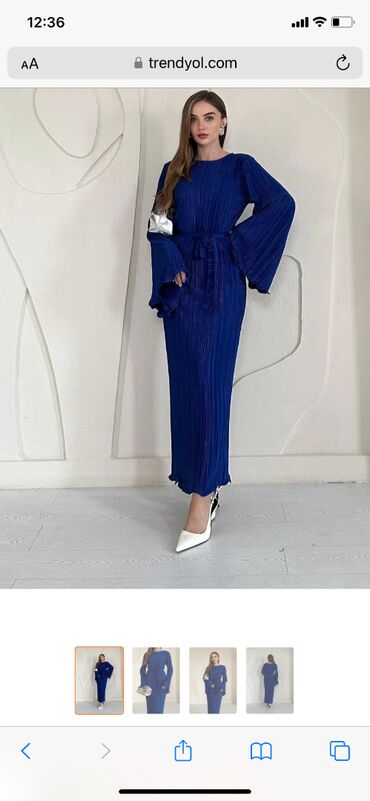 Uzun mavi rəngli ziyafət geyimi. 38,36 razmerdir. 200 m tikilib. Cəmi 3 saatliq geyilib.