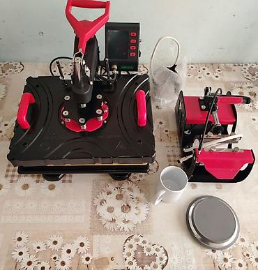 Tezislərcə Təsvir: - Tekstil üçün istilik pressi (heat press) aparatıdır. - Elektriklə işləyir; üst hissədə rəqəmsal ekranlı idarəetmə bloku var. - Kənarlarında təhlükə nişanları olan, möhkəm metal...