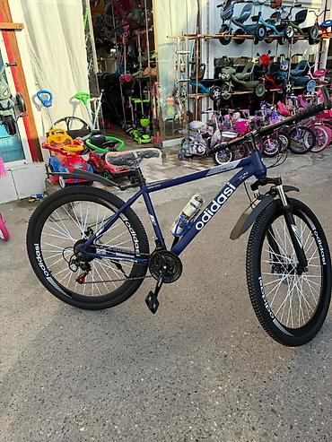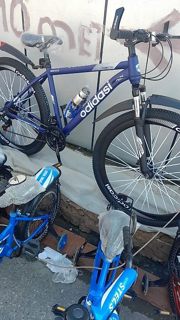 Dağ tipli velosiped 250 azn alinib - Çərçivə: yüngül ərintili çərçivə, qara rəngdə, mavi-aqua naxışlarla - Brend işarəsi: “adidas” yazılı dizayn (brendə aidiyyəti barədə zəmanət verilmir) - Asqı ...