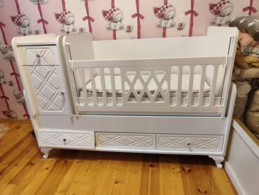 Tecili olaraq uşaq otağı üçün mebel satılır: çarpayı matras ilə, tumba, komod, yazı masası, təkərli oturacaq, kitab/oyuncaq polkası və güzgülü paltar dolabı Çarpayı, tumba, komod, masa-MADEYRAdan ...