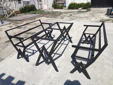 Metall karkaslı salon/terrasa mebel dəsti - Komplekt: 1 ədəd iki nəfərlik divan + 2 ədəd kreslo - Dizayn: Minimalist “loft/industrial” üslub, yan tərəflərdə X-formalı metalkarkas - Rəng: Tünd yaşı...