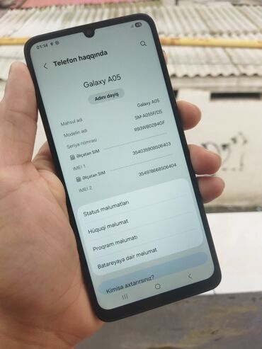 Salam. samsung a05. 128yaddas. heç bir prablemi yoxdu. harda isdesez yoxlatdira bilersiz.usdada olmayıb