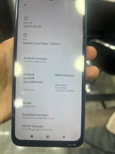 Xiaomi smartfon - Ekran: tam ekran ön kamera (delik dizaynlı), sol alt hissədə nazik çat görünür - Sistem: MIUI Global 13.0.2 (stabil), Android 12 (SP1A.210812.016) - Yaddaş: 128 GB daxili yaddaş,...