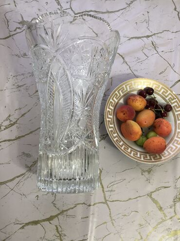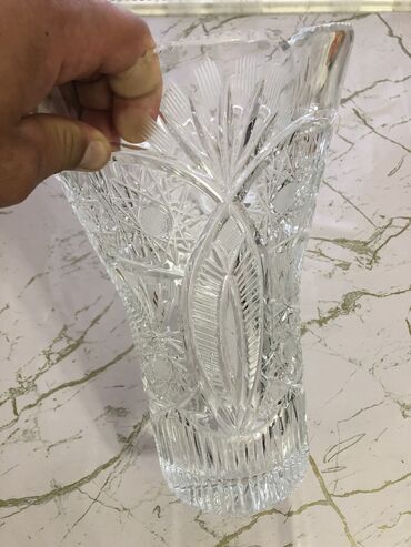 Çox gözəl böyük xrustal gül qabı. Hündürlüyü 30sm. Ağırdı, təzədi,işlənməyib pul lazımdı deyə satılır 100m.