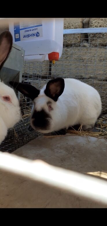 Salam aleykum təmiz qan Şəkildəki Kalfornya sort heyvanın balaları 2 aylıq və Burqun sort dovşanlarının balaları satılır bir ədədi 30 azn