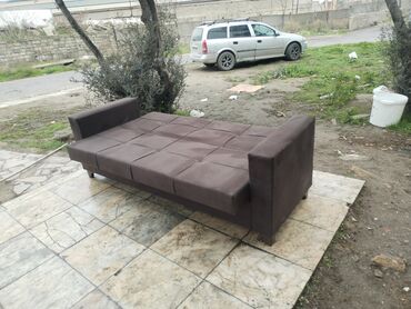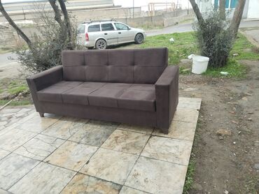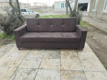 Mebel növü: 3 nəfərlik divan - Model: Düz xəttli, geniş oturacaqlı, kvadrat tikişli bel hissəsi - Rənglər: Tünd boz və iki rəngli (krem + qəhvəyi) variantlar - Parça: Yumşaq toxumalı üzlük, asan t...