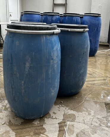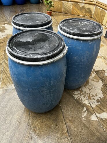 Mavi metal barellər (200 litr) - Həcmi: təxmini 200 L - Material: qalın divarlı metal, möhkəm konstruksiya - Rəng: mavi - Formaları: standart silindrik, üst və aşağı hissədə gücləndirici halqalar ...