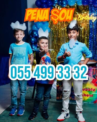 Uşaq tədbirləri üçün personajlı şou proqramları seçeeceyiniz şeylere göre qiymetler deisir köpük alov ve baska personajlarda var . Təklif edilən obrazlar: - Panda Show – iri ölçülü panda kostyumu,...