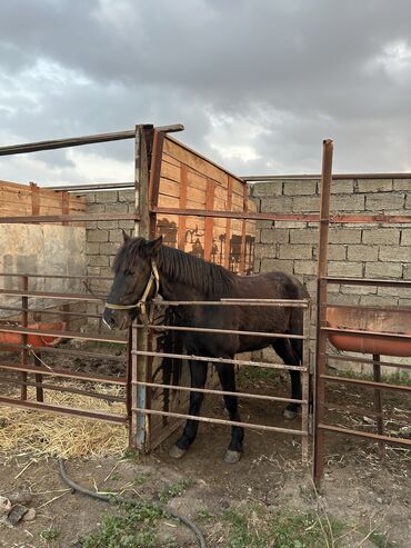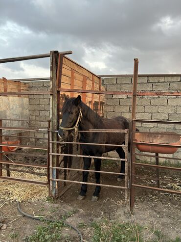 Satılır: at - Rəng: tünd qəhvəyi (qara yal və quyruq), alınında kiçik ağ nişanə - Bədən quruluşu: möhkəm, balanslı, uzun ayaqlar; dırnaqlar təbii formada - Boy və çəkidə orta ölçülü, kənd və çöl ş...