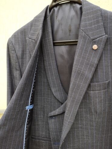 Pierre Cardin kişi kostyumu – klassik nazik zolaqlı dizayn - İki parçadan ibarət: pencək və şalvar - Rəng: tünd (nazik açıq zolaqlar) - Ölçü: 50 - Drop: 6/S - Parça tərkibi: 67% viskoza, 33% polie...