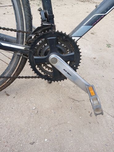 - Sürət sistemi: Shimano ön dəyişdirici, üçlü ön ulduz; arxa çarx kaseti ilə 7 pilləli ötürmə