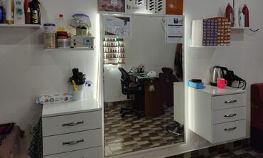 - Güzgü ilə tumbalar birlikdə harmonik dəst yaradır; salon, bərbərxana, vizaj guşəsi və ya ev studiyası üçün praktik seçimdir.