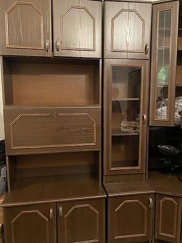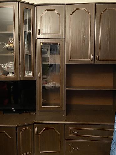 - Bağlı bölmələr: aşağı və yuxarı hissədə çoxsaylı qapalı şkaflar, mərkəzdə künc formasında alt dolab.