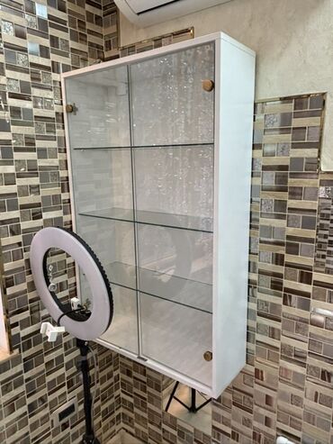 - Ayrı asma vitrin: şüşə sürgülü qapılar və şüşə rəflər