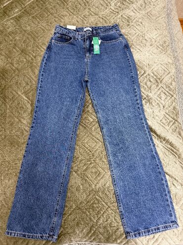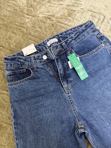 Mom jeans model jeans şalvar. 34-36 ölçüyə uyğun. yüksek bel . Seligsli geyinilib hec bir problemi yoxdur. Qiymət 15 azn